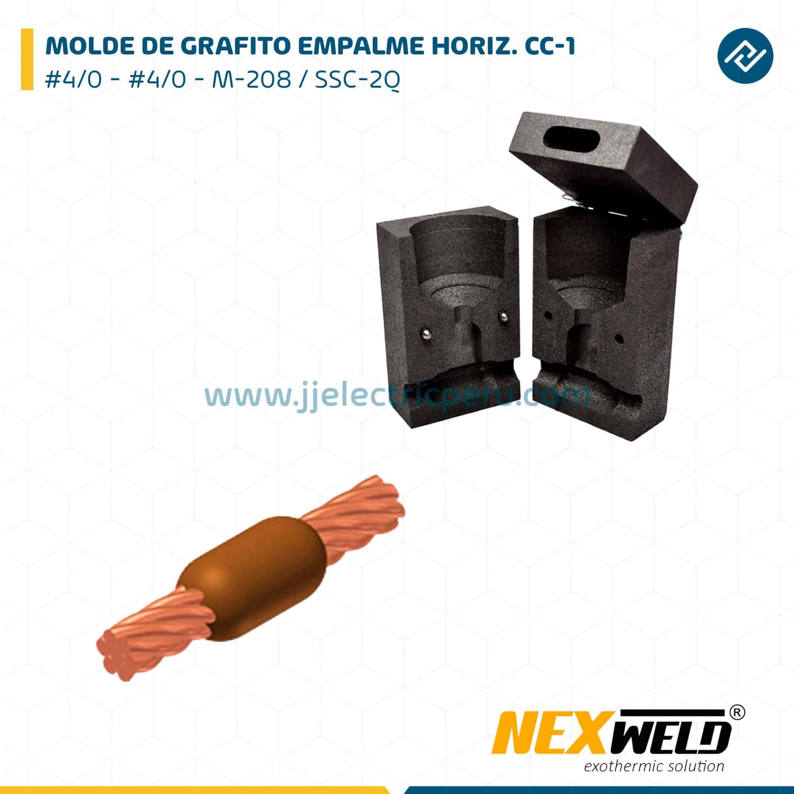 NEXWELD es una marca especializada en soldadura exotérmica para la realización de conexiones eléctricas permanentes, principalmente en sistemas de puesta a tierra y continuidad eléctrica. Sus soluciones están diseñadas para ofrecer alta conductividad, seguridad y durabilidad, utilizando materiales de calidad como moldes de grafito, polvos de soldadura y pólvoras de ignición que garantizan uniones moleculares firmes y confiables.