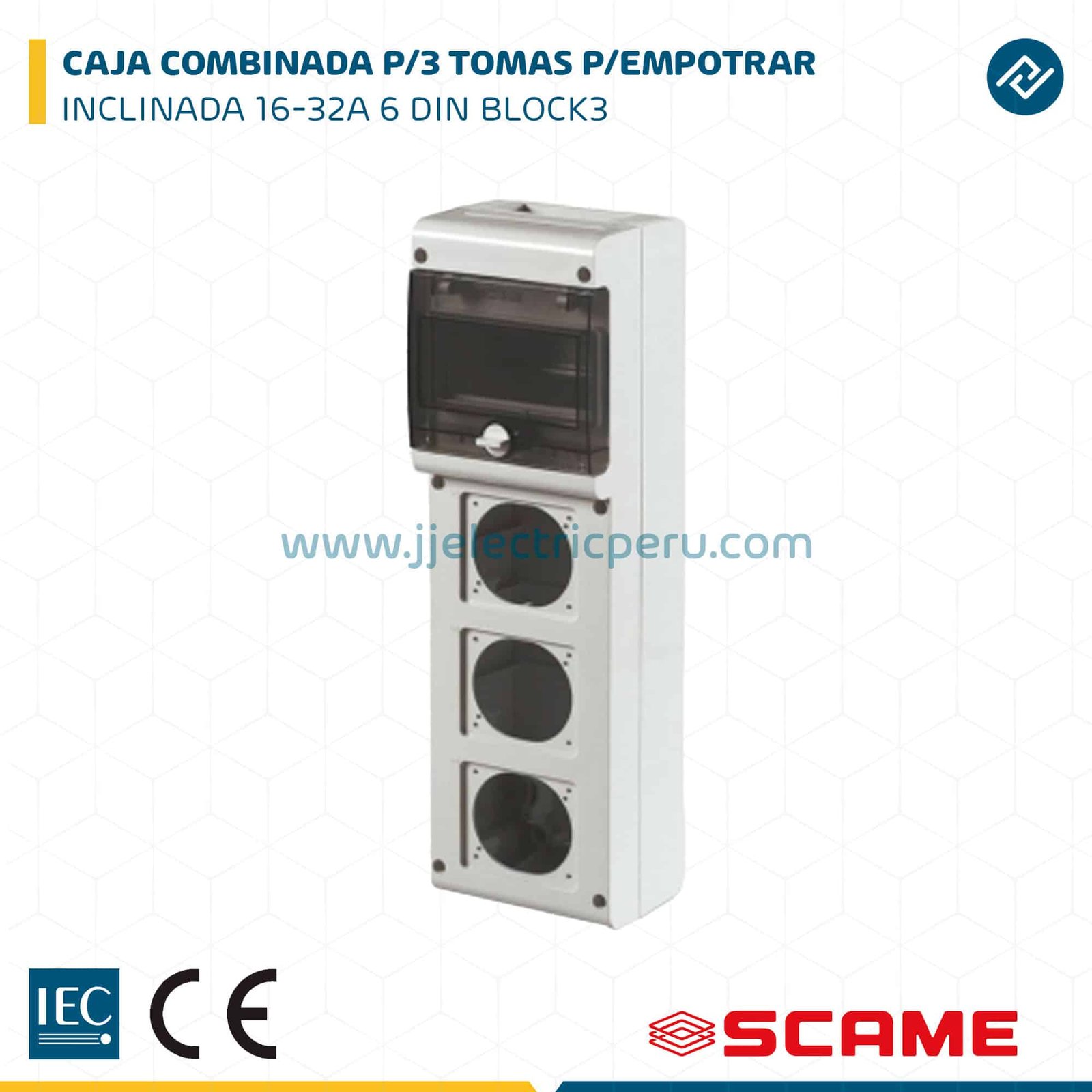 CAJA COMBINADA P/3 TOMAS P/EMPOTRAR INCLINADA 16-32A 6 DIN BLOCK3 SCAME