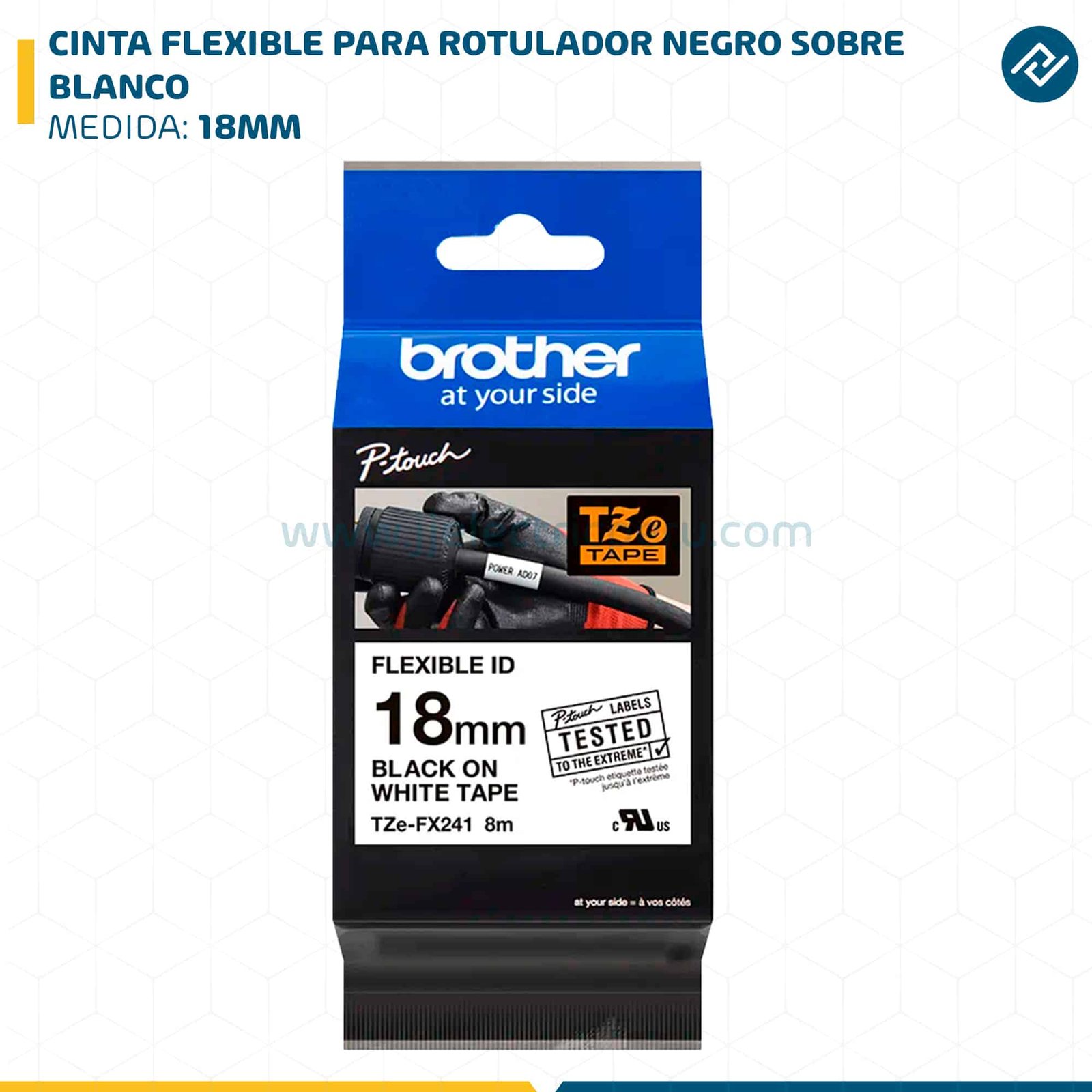 CINTA FLEXIBLE PARA ROTULADOR NEGRO SOBRE BLANCO 18MM
