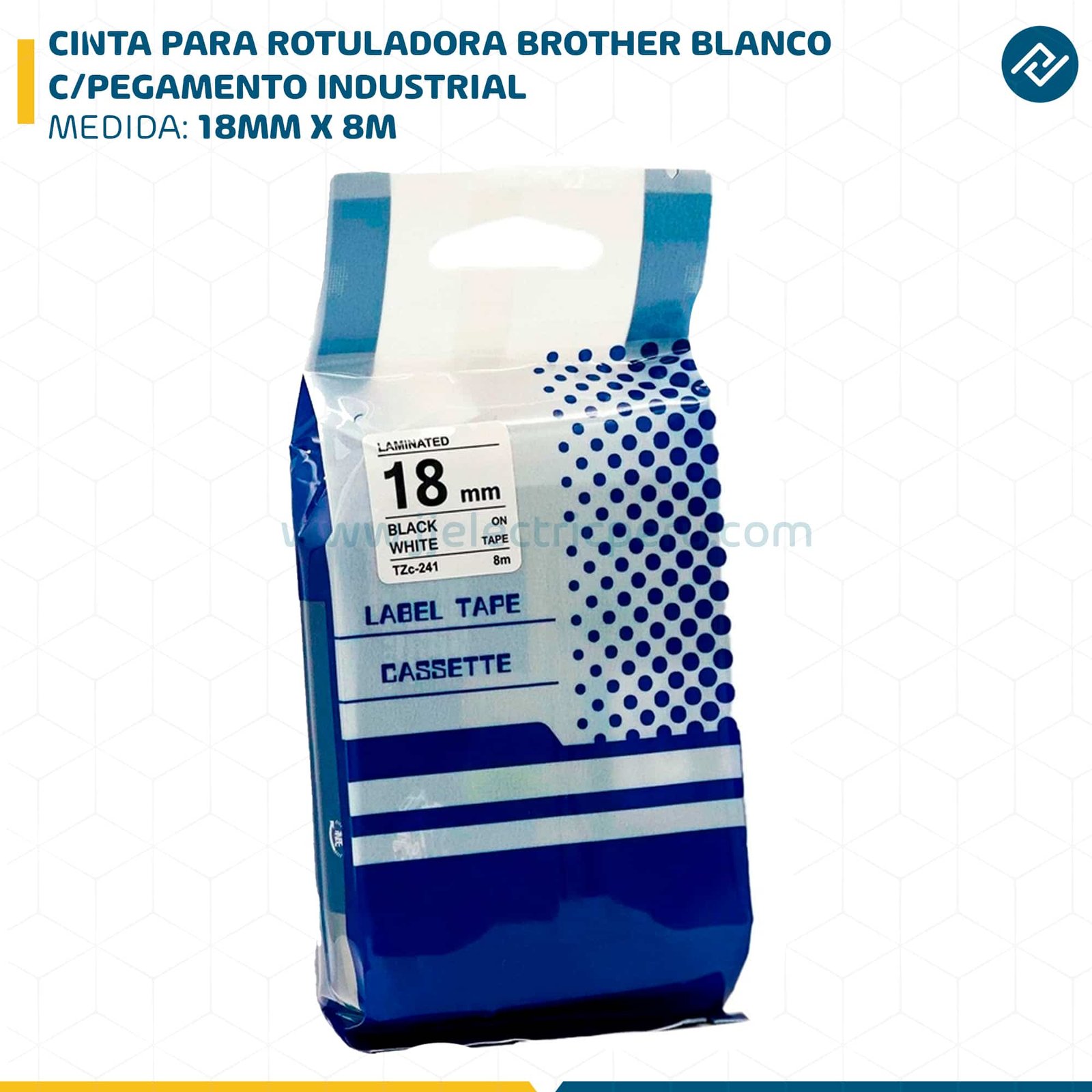 CINTA PARA ROTULADORA BROTHER 18MM X 8M BLANCO C/PEGAMENTO INDUSTRIAL