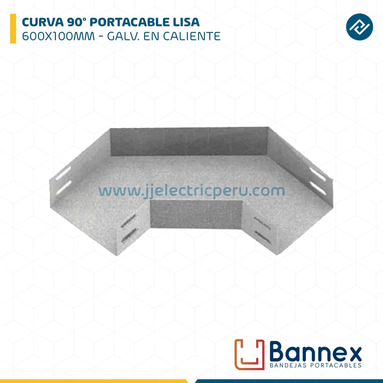 CURVA 90° PORTACABLE LISA 600X100MM ESPESOR 1.2MM/1.5MM GALVANIZADA EN CALIENTE BANNEX