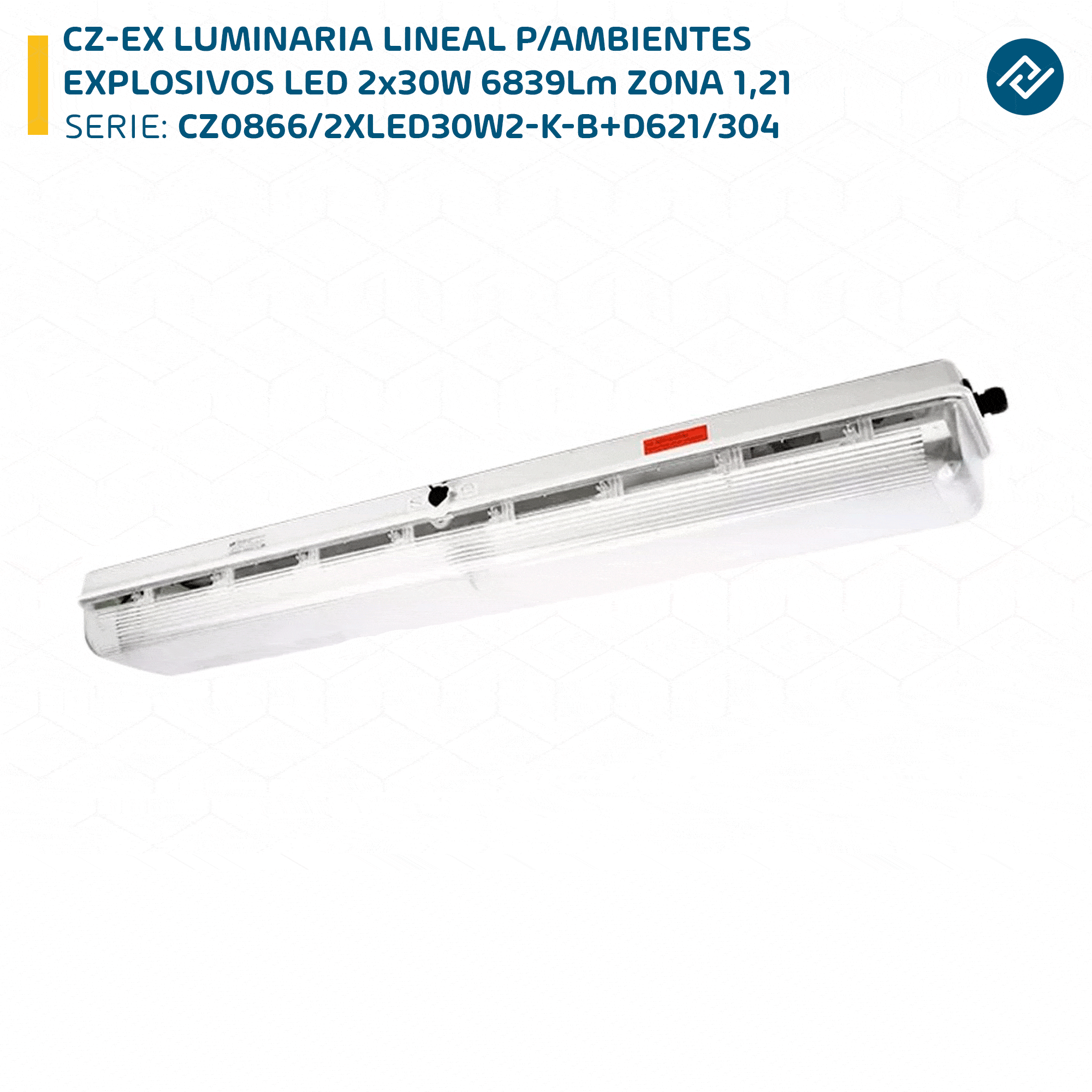 CZ-EX LUMINARIA LINEAL P/AMBIENTES EXPLOSIVOS LED 2x30W 6839Lm ZONA 1,21 CZ0866/2XLED30W2-K-B+D621/304