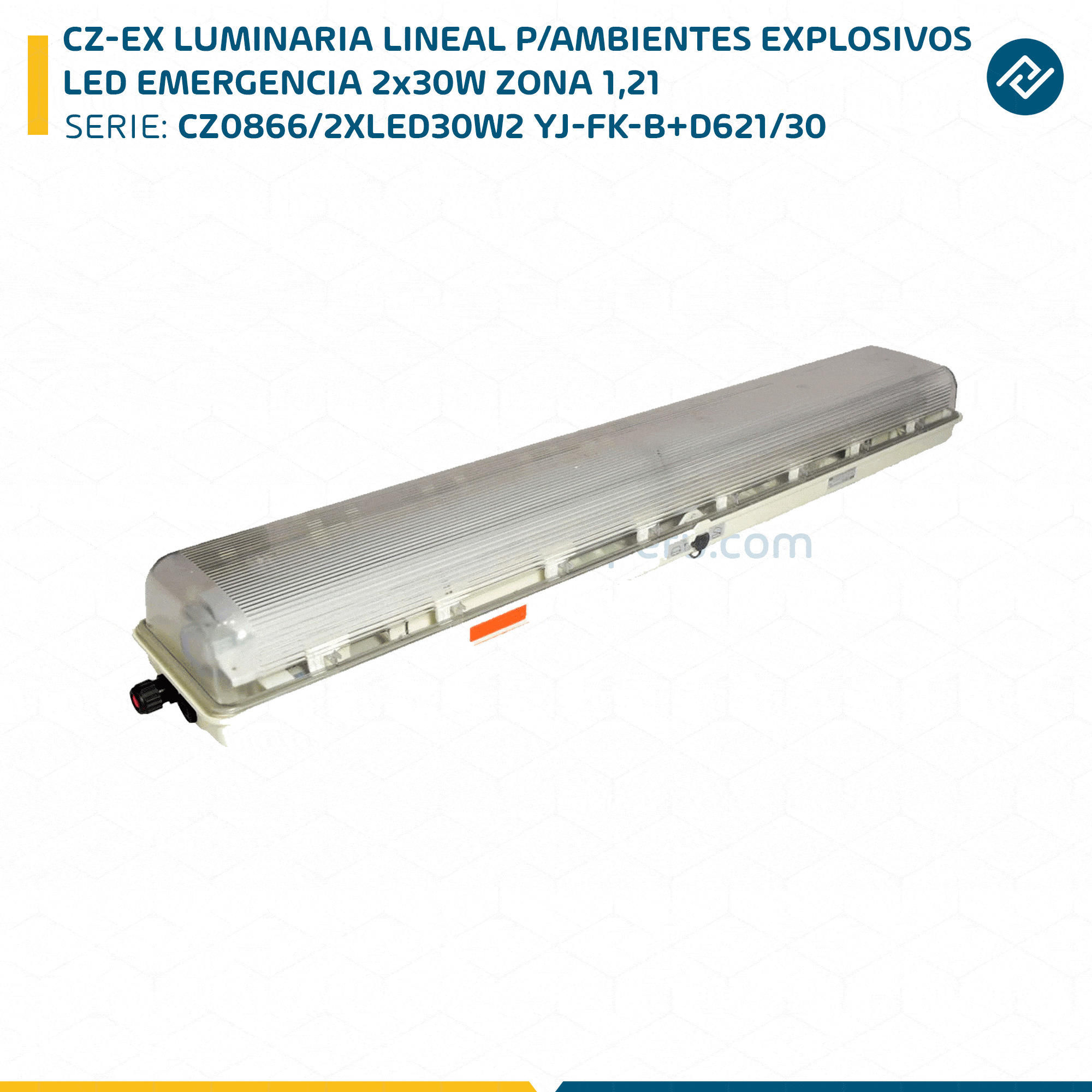 CZ-EX LUMINARIA LINEAL P/AMBIENTES EXPLOSIVOS LED EMERGENCIA 2x30W ZONA 1,21 CZ0866/2XLED30W2 YJ-FK-B+D621/30