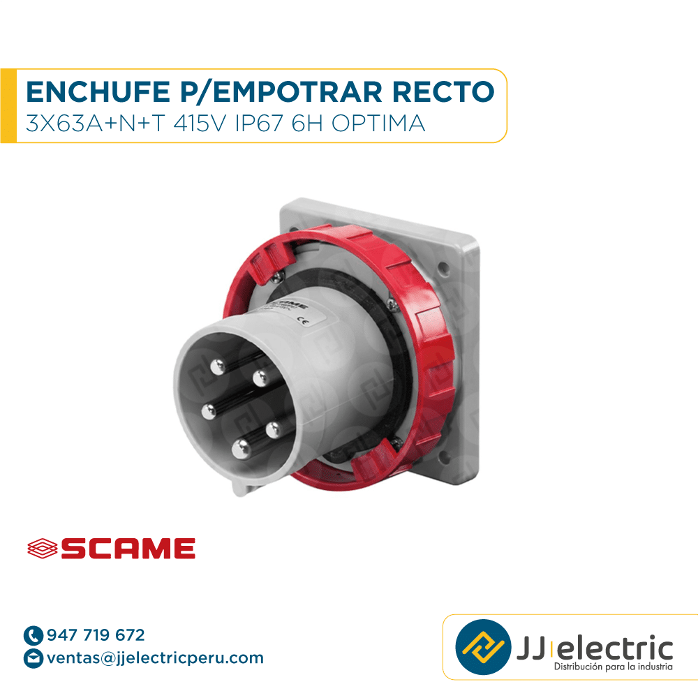 Enchufe p/empotrar recto 3x63A+N+T 415V IP67 6h Optima – SCAME