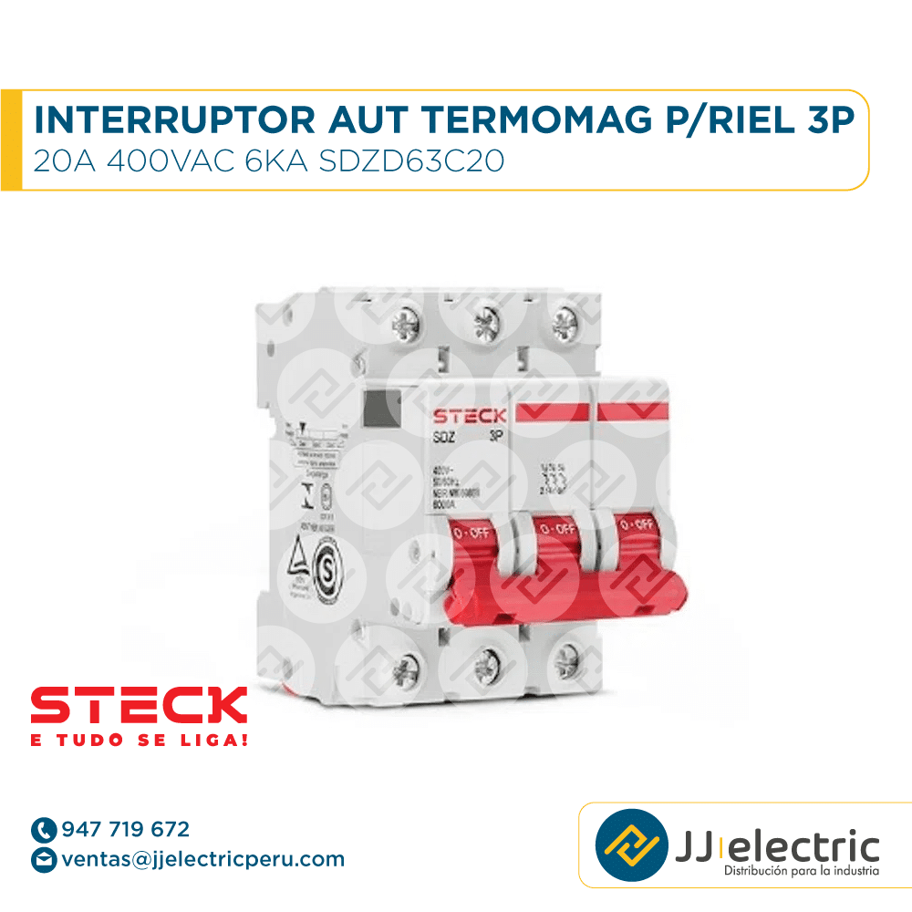 Interruptor Aut Termomagnético P/Riel 3P 20A 400Vac 6Ka Sdzd63C20 – STECK